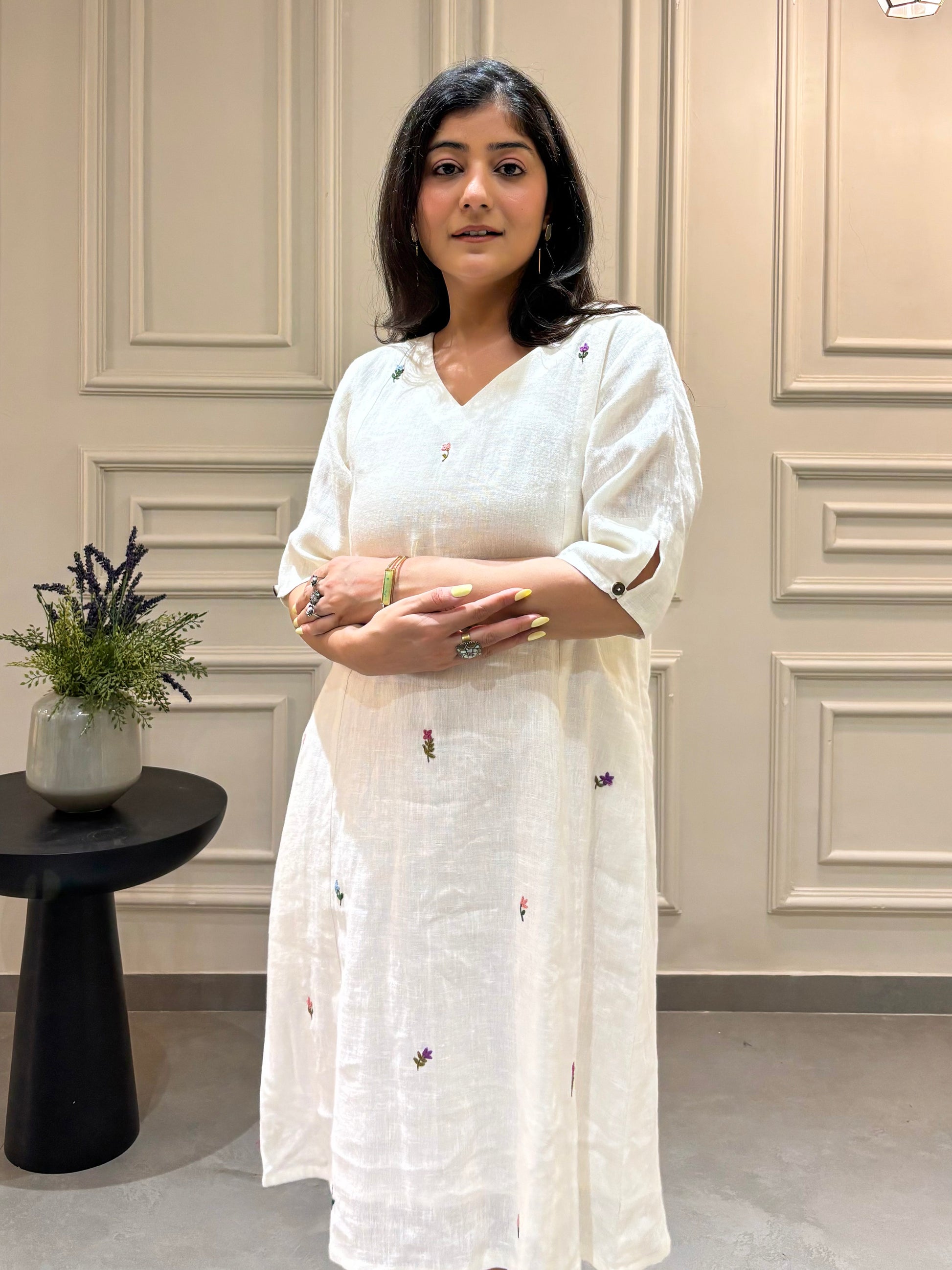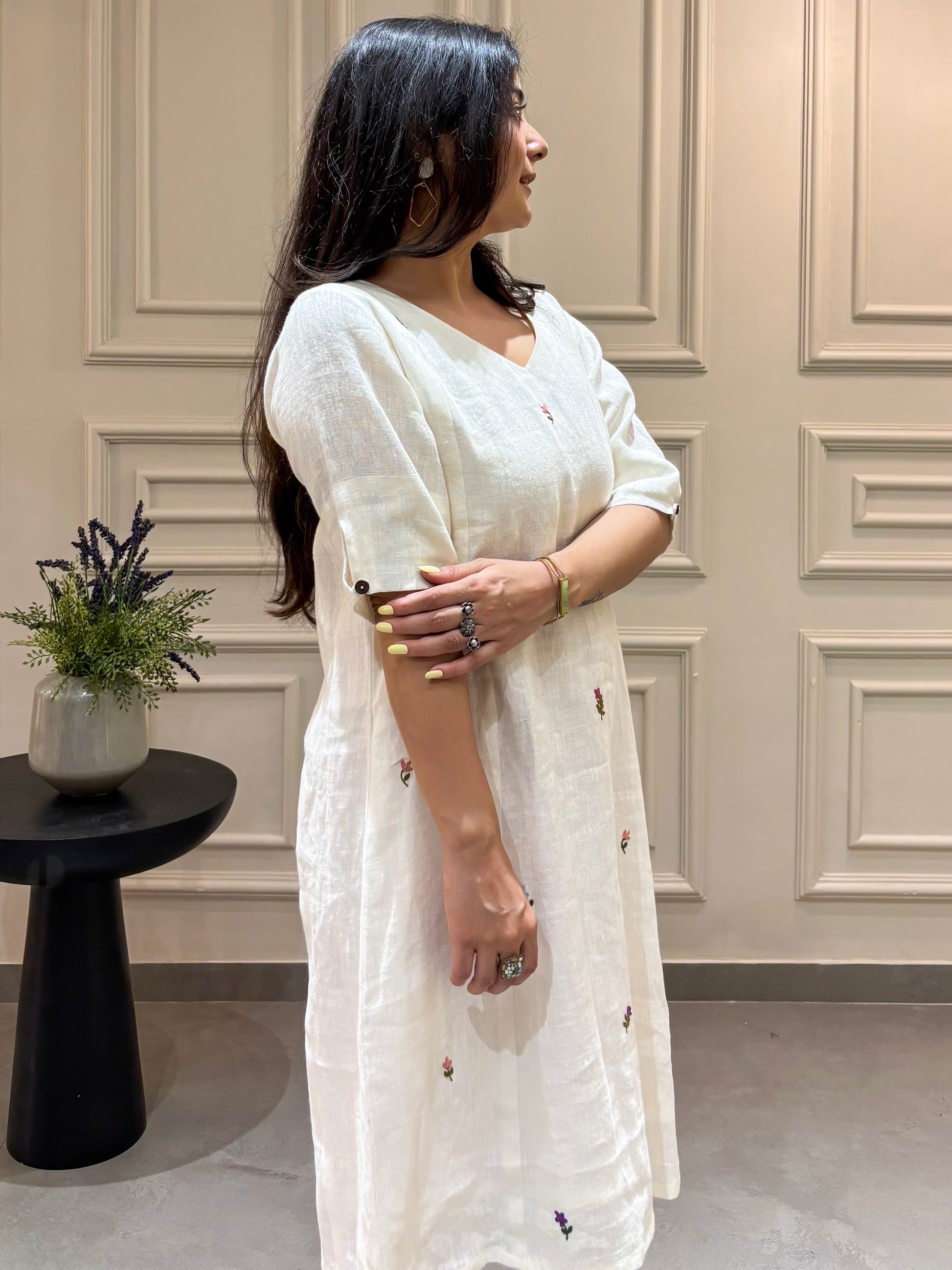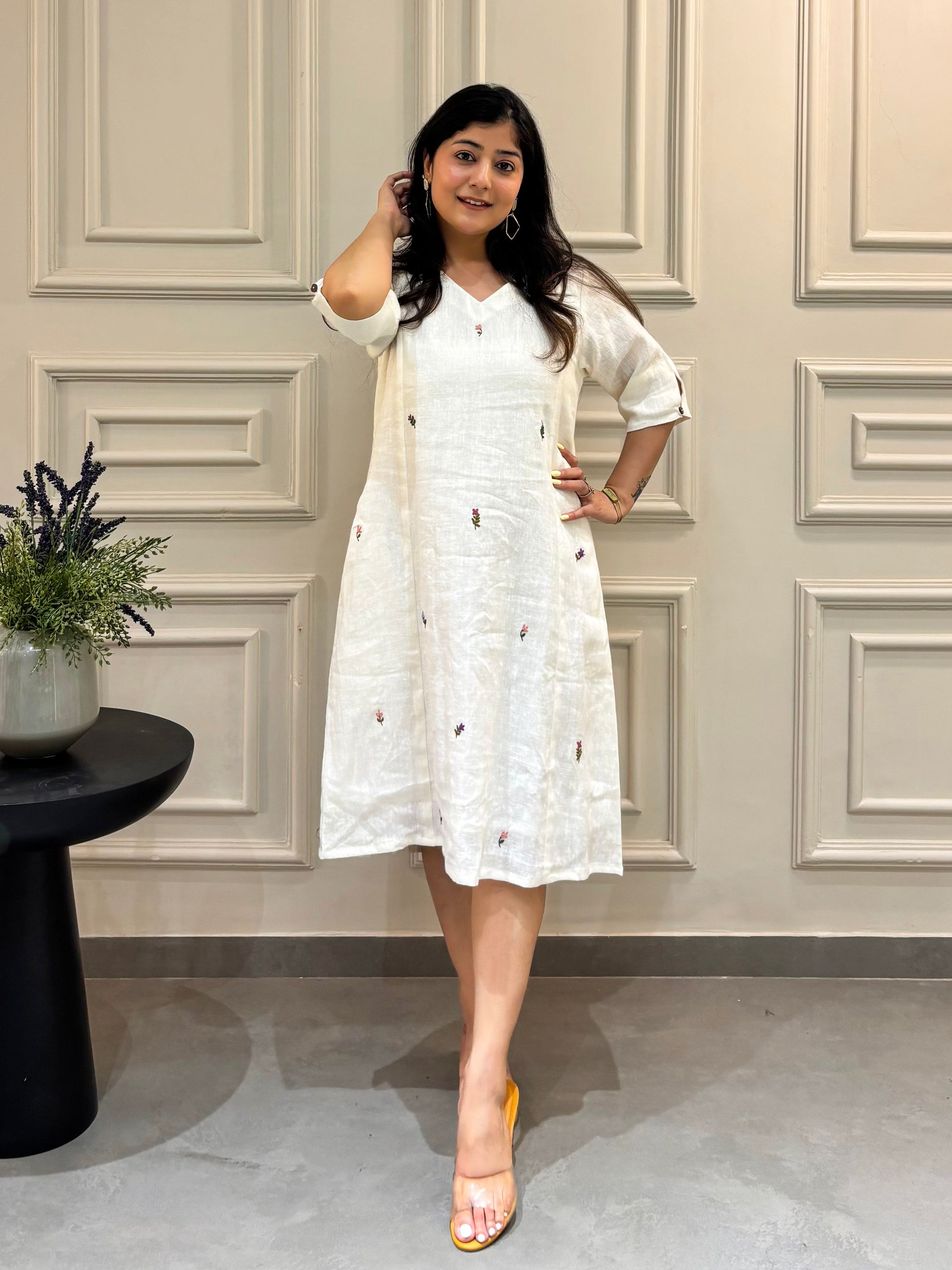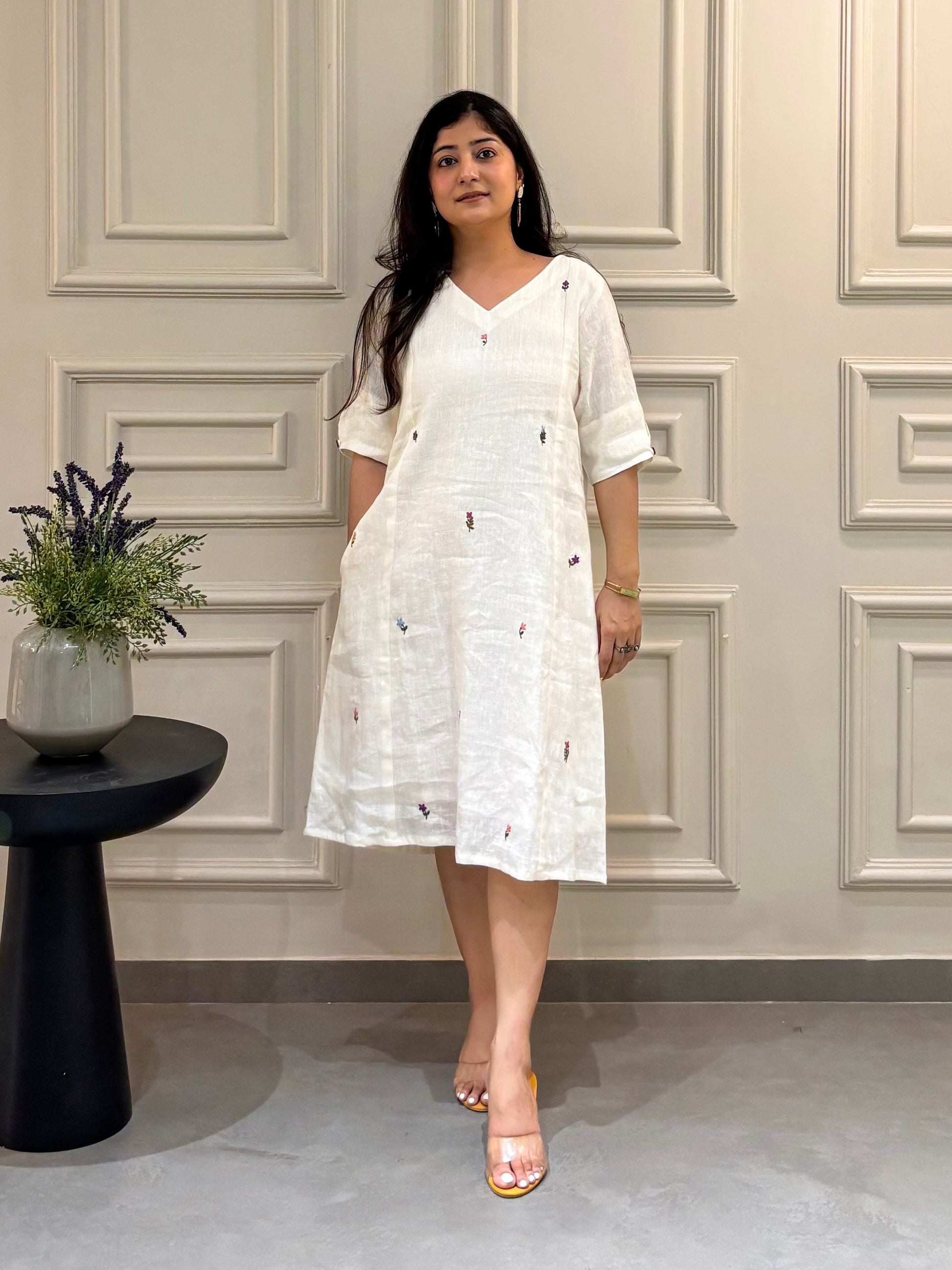 Aesthetic White Linen Dress
