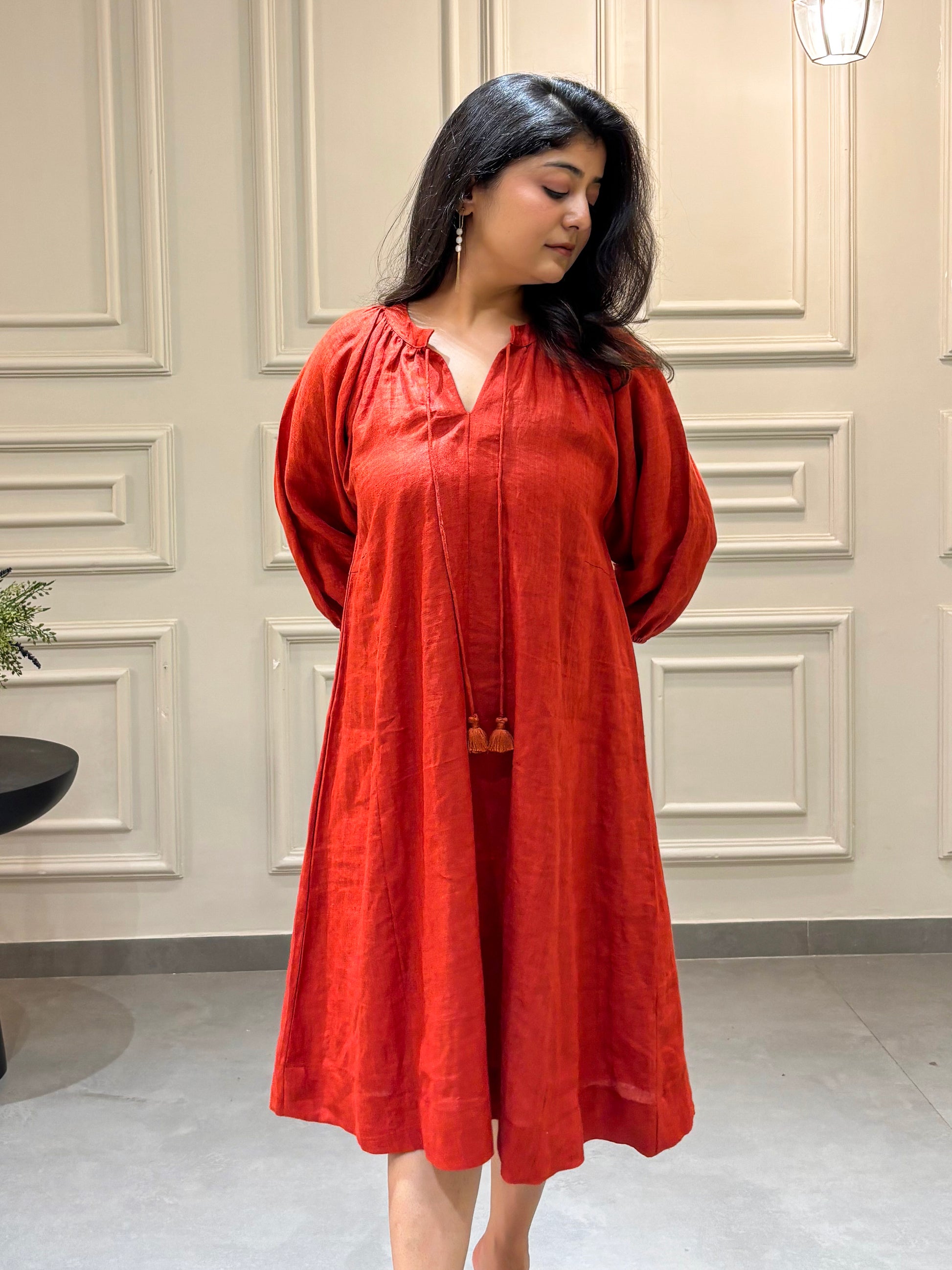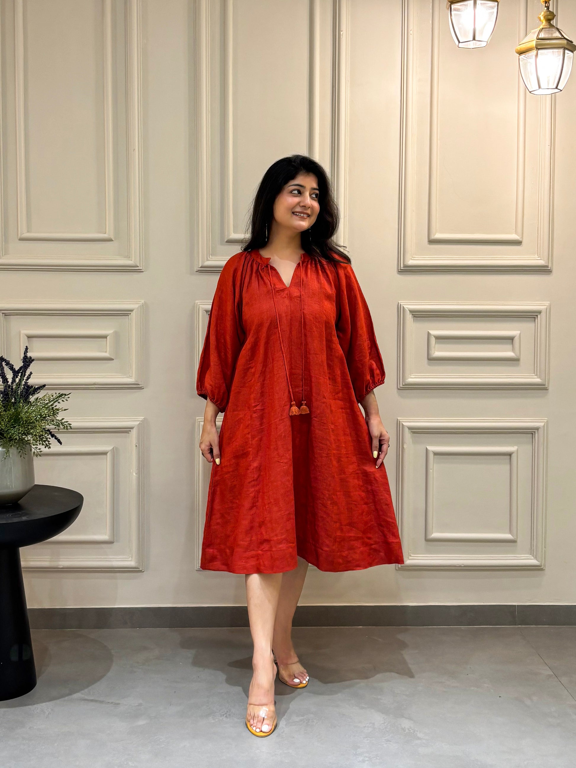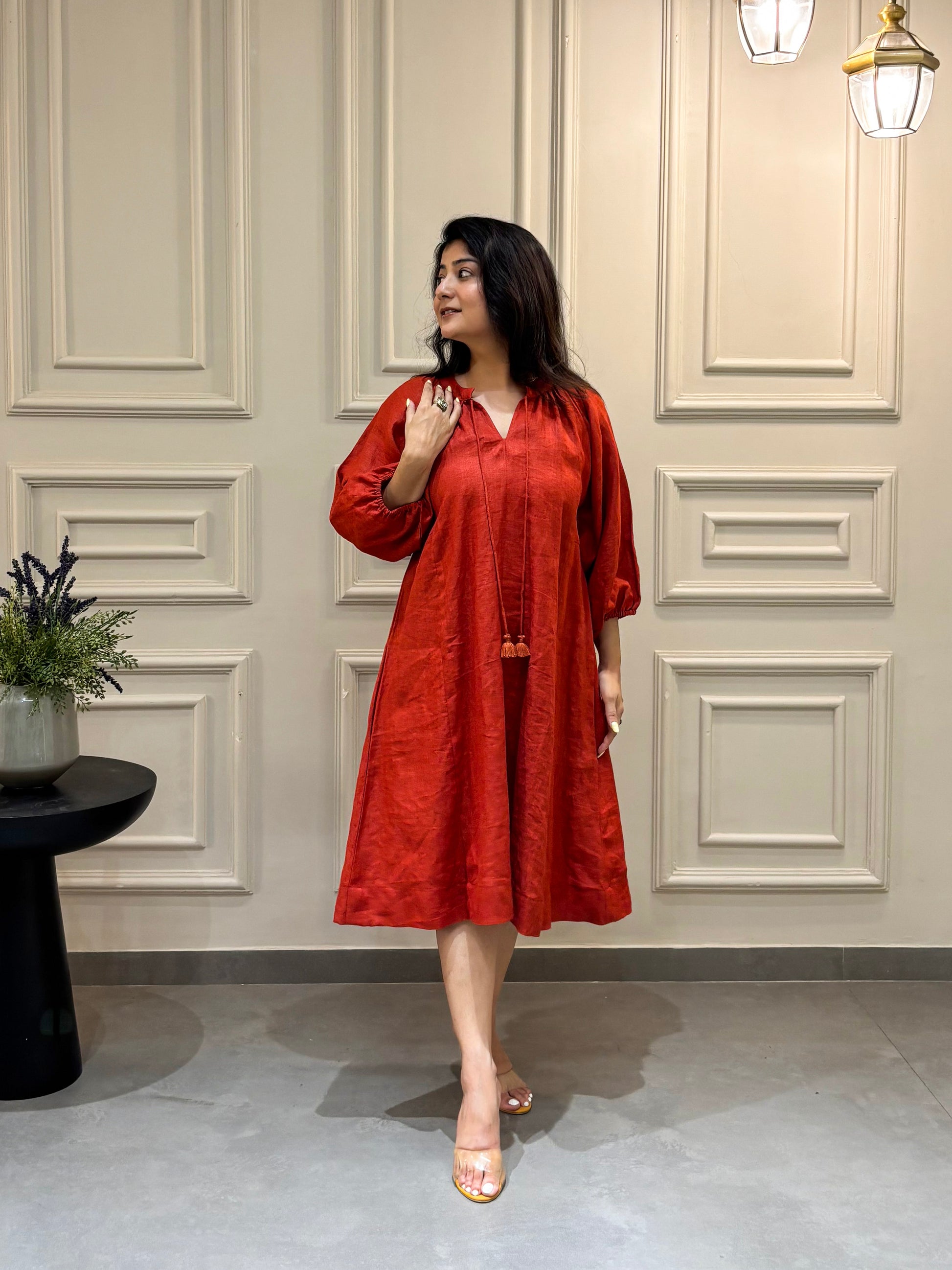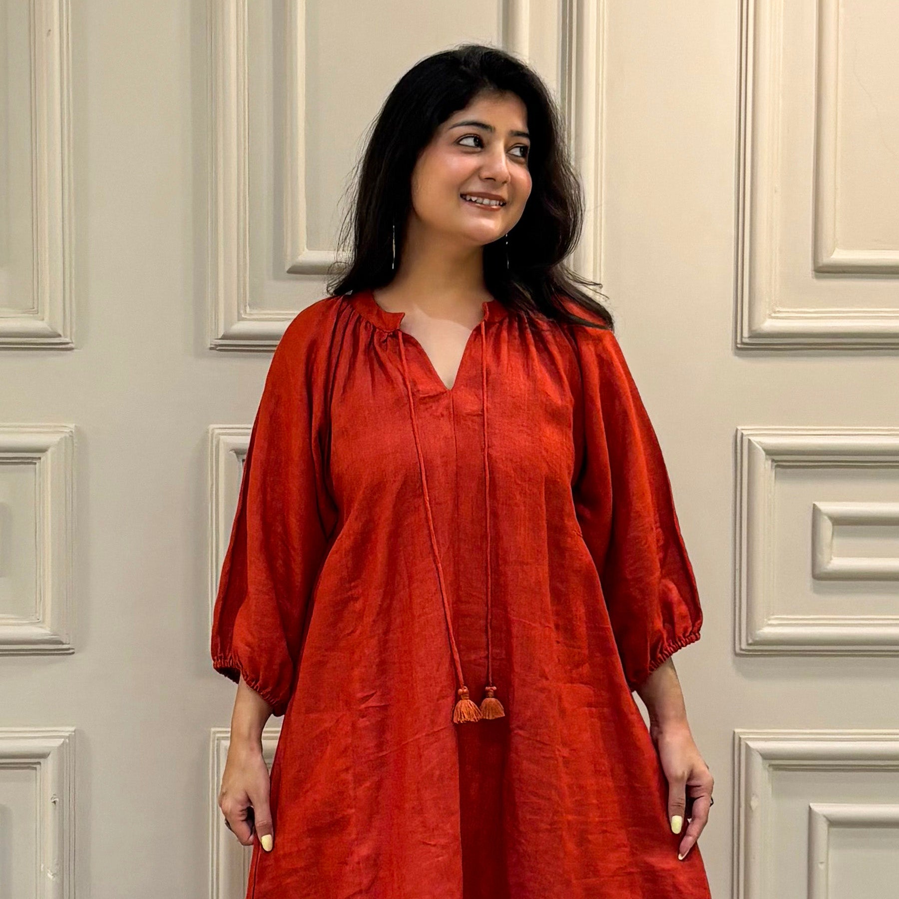 The Bold & Agilent Orange Linen Dress is a versatile and sophisticated addition to any wardrobe. Crafted from high-quality linen, this dress features a convenient pocket for all your essentials. Perfect for any occasion, its bold color will make you stand out while the durable fabric ensures comfort and style