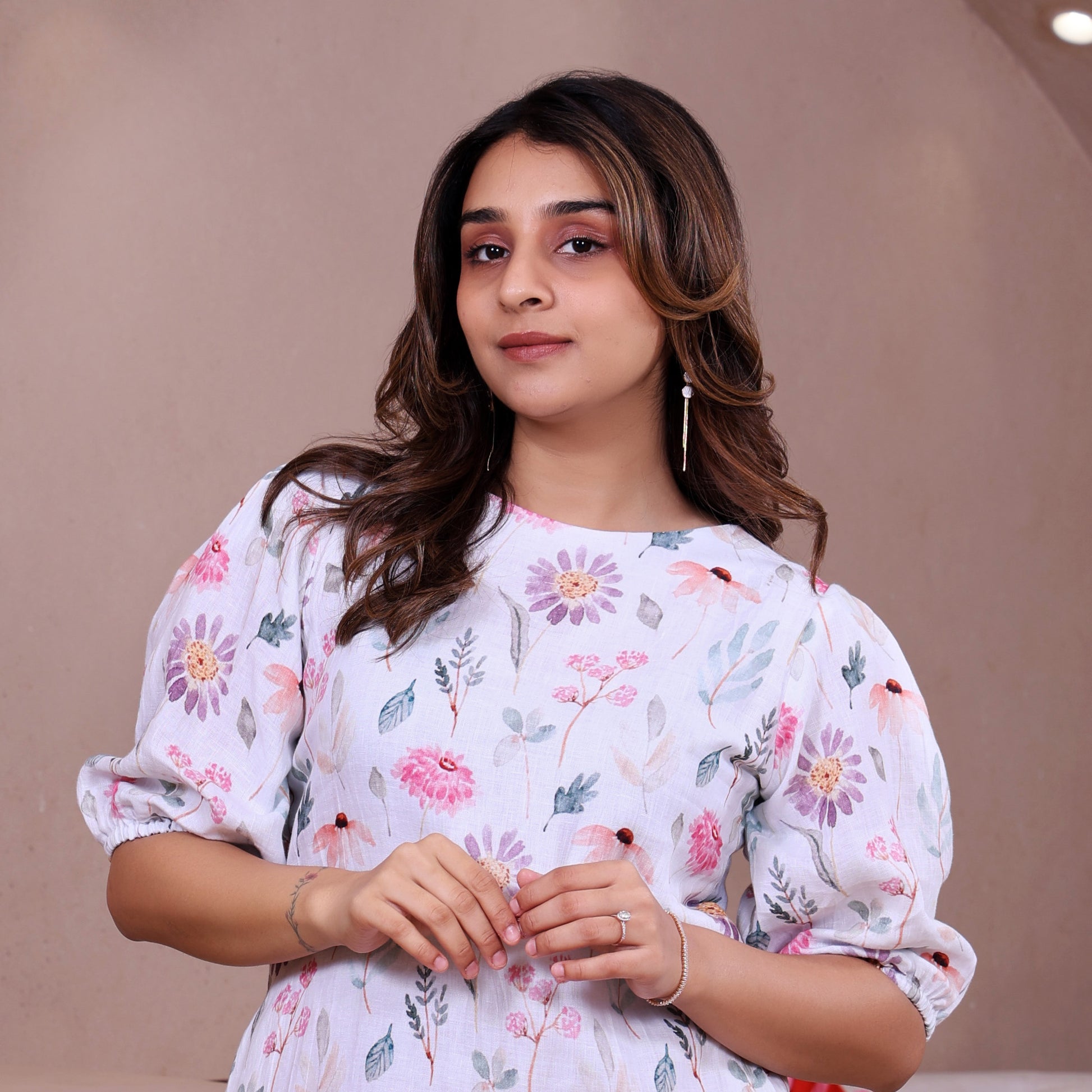 Experience the innate sophistication of our Flower Printed Linen Dress, suitable for any event, whether it be a holiday or a simple day. Made with breathable and lightweight linen, this trendy attire offers a fashionable, comfortable, and laid-back style. Accessorize for a formal touch or maintain a classic look for a timeless appeal.